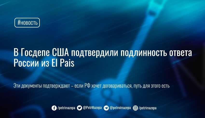 В Госдепе США подтвердили подлинность ответа России из El Pais