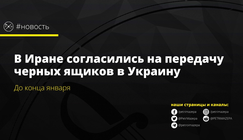 «Черные ящики украинского авиалайнера, который был случайно сбит иранскими военными в этом месяце, будут отправлены в Украину», - цитирует Reuters сообщение информационного агентства Tasnim.