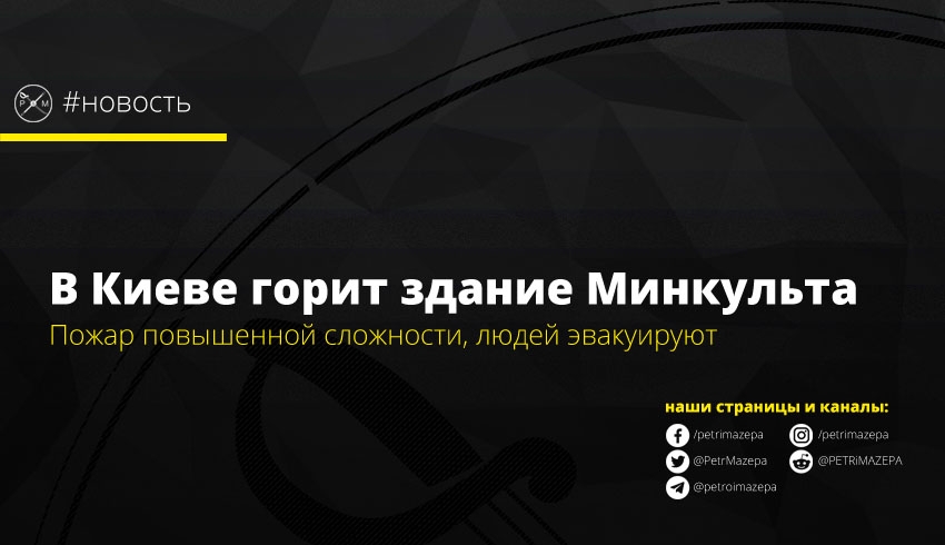 В Киеве горит здание Министерства культуры, молодежи и спорта. ГСЧС уже объявило, что пожар относится к категории повышенной сложности, сотрудники министерства были эвакуированы, пожар локализован, тушение продолжается.