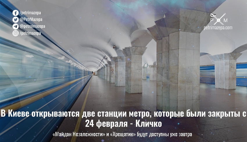 С завтрашнего дня в Киеве откроют две станции метро, которые были закрыты с начала полномасштабного вторжения россии - «Майдан Незалежности» и «Хрещатик» и переход между ними.