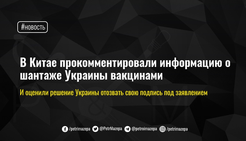 В Китае прокомментировали информацию о шантаже Украины вакцинами