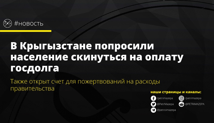 Растущие расходы бюджета Кыргызстана при рекордном дефиците вынудили правительство просить помощи у населения. Минфин открыл два счета для пожертвований – на один предлагают переводить средства на поддержку бюджета, то есть, на любые расходы правительства; а на второй – для выплаты государственного долга.