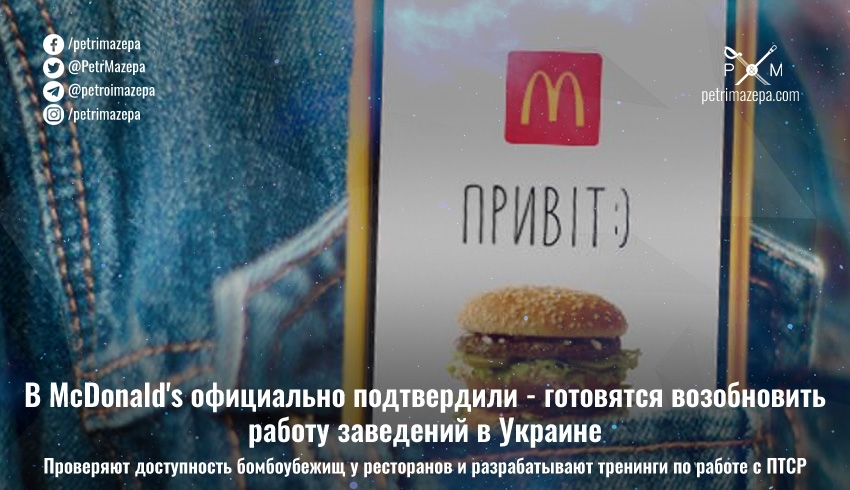 В McDonald's официально подтвердили - готовятся возобновить работу заведений в Украине