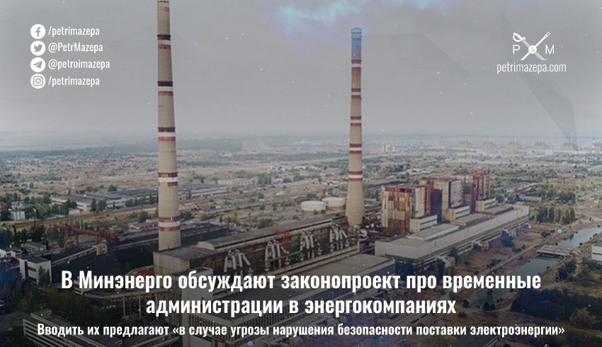 Министерство энергетики Украины до конца декабря проводит общественные законопроекта, которым прописывается возможность введения временной администрации «в случае угрозы нарушения безопасности поставки электрической энергии».