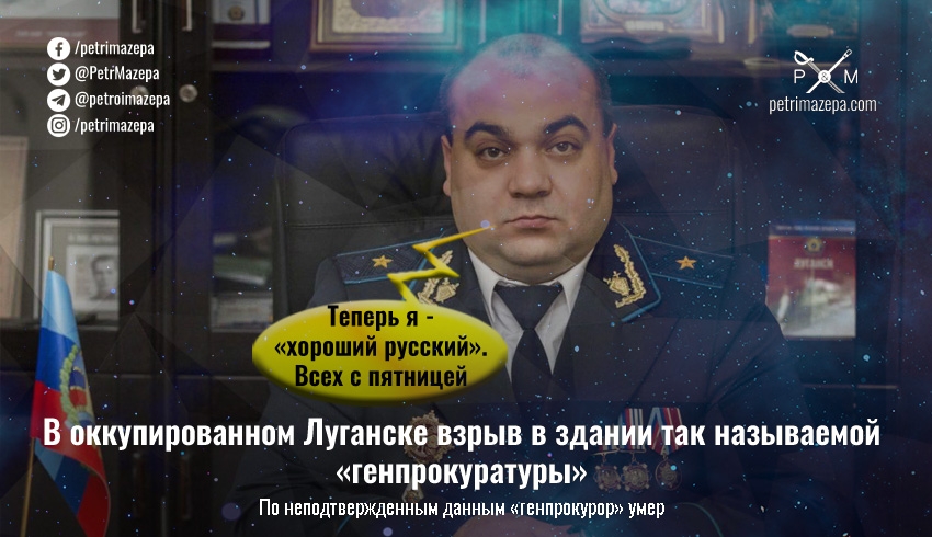 «По предварительным данным, генпрокурор ЛНР Сергей Горенко скончался от полученных ранений в результате взрыва в его кабинете». Информацию о смерти Горенко российским СМИ сообщили источники. В настоящее время у СМИ нет подтверждения информации от так называемой «власти ЛНР», передает «Украинская правда».