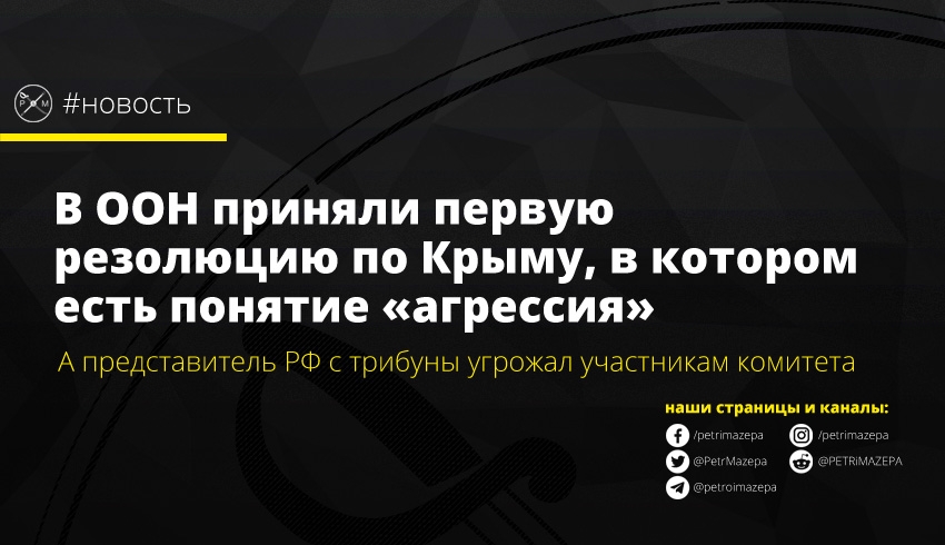 Вчера Третий комитет Генеральной ассамблеи ООН одобрил проект резолюции по ситуации с правами человека в Крыму – в условиях российской оккупации. Уникальность данной резолюции в том, что в документе по АР Крым впервые применено определение «агрессия» в отношении действий РФ.