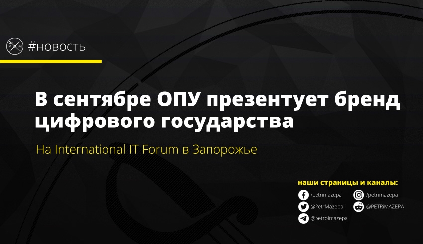 Пресс-служба президента Украины сообщила, что 27 сентября в Запорожье при поддержке ОПУ состоится International IT Forum. И именно там впервые будет представлен бренд цифрового государства.