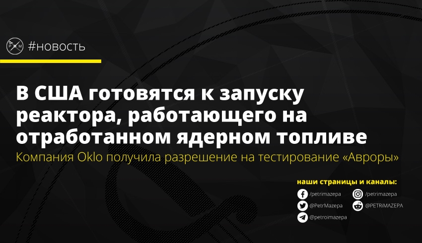 В США коммерческая компания готовится к испытанию атомного реактора «Аврора», который будет работать на новом типе топлива. Для работы реактор «Аврора» будет использовать высокообогащенное топливо, созданное из отходов реактора Experimental Breeder Reactor-II (Национальная лаборатория Айдахо).