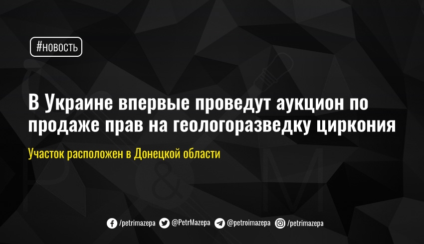 Глава Государственной службы геологии и недр Украины Роман Опимах презентуя инвестиционный потенциал «Минералы будущего», рассказал – 15 февраля пройдет аукцион, на котором впервые можно будет приобрести право на геологоразведку циркония в Украине.