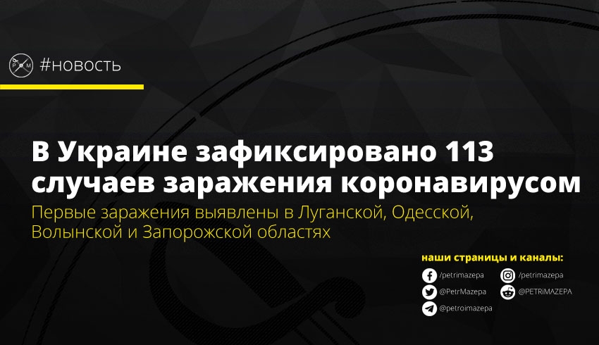 В Украине зафиксировано 113 случаев заражения коронавирусом