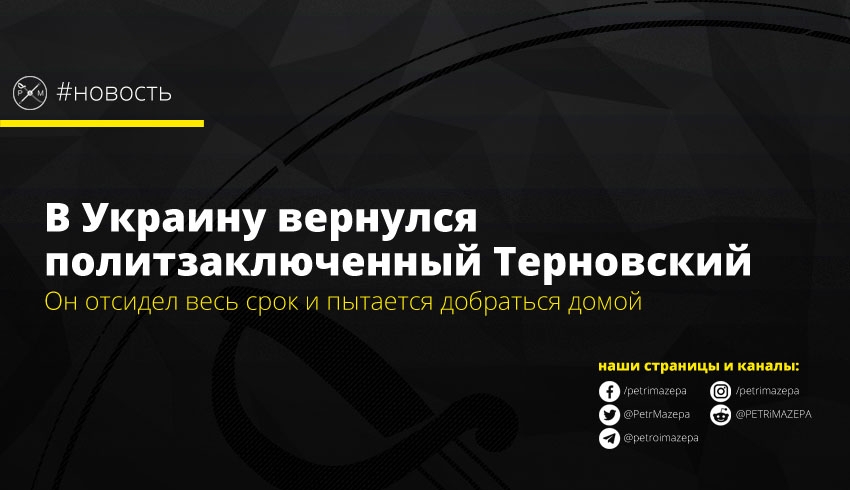 Политзаключенный Роман Терновский, осужденный в РФ за участие в «Правом секторе», закончил отбывать срок незаконного наказания и вернулся на родину. Сейчас Терновский направляется домой в Харьковскую область, и «Об'єднання родичів політв'язнів Кремля» информирует, что он путешествует без денег и каких-либо ресурсов.