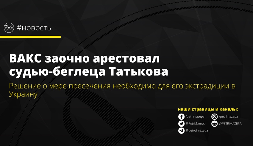 Высший антикоррупционный суд Украины (ВАКС) заочно арестовал экс-главу Высшего хозяйственного суда Виктора Татькова. Такое решение является необходимым условием для его экстрадиции в Украину. Сторона защиты имеет пять дней на обжалование решения суда.