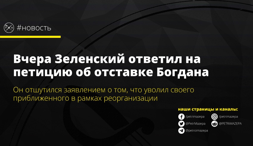 Вчера Зеленский ответил на петицию об отставке Богдана