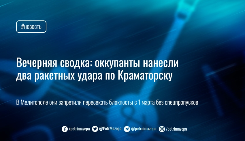 Вечерняя сводка: оккупанты нанесли два ракетных удара по Краматорску