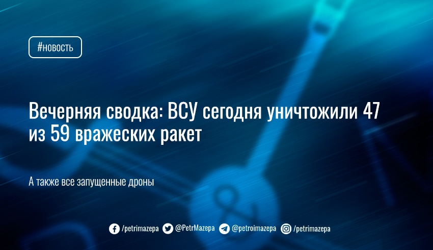 Вечерняя сводка: ВСУ сегодня уничтожили 47 из 59 вражеских ракет