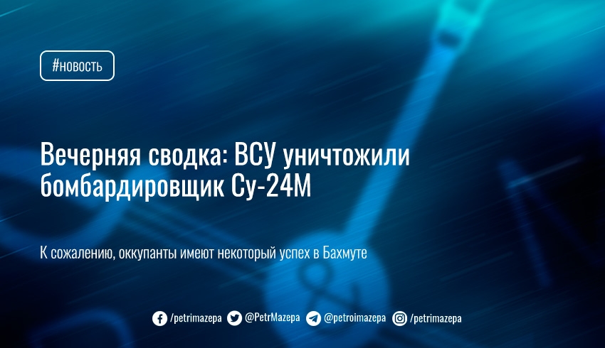 Вечерняя сводка: ВСУ уничтожили бомбардировщик Су-24М