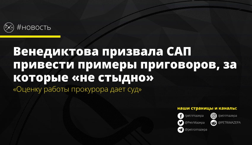 - Вчера генпрокурор Венедиктова раскритиковала работу прокуроров САП, заявив, что их бездеятельность требует немедленного реагированию.