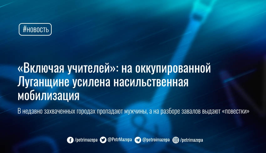 Он также сообщает, что в недавно оккупированных городах пропадают мужчины, а на общественных работах, в том числе на разборе завалов, выдают повестки. «Охота за мужчинами призывного возраста на оккупированной в 2014 году территории Луганщины длится уже несколько месяцев», — подчеркивает он.