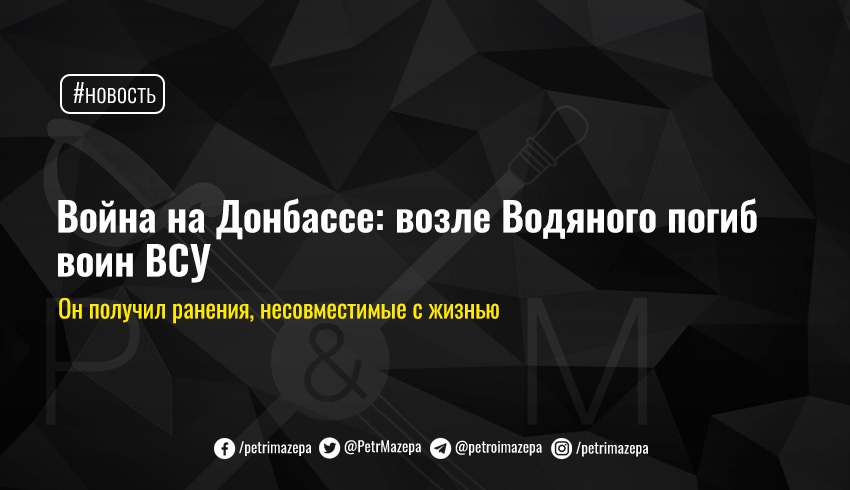 Как сообщает ОТГ «Восток» в Facebook, военнослужащий погиб в районе Водяного на Донбассе в результате обстрела позиций ВСУ из минометов, гранатометов, пулеметов и стрелкового оружия. Он получил ранения, несовместимые с жизнью.