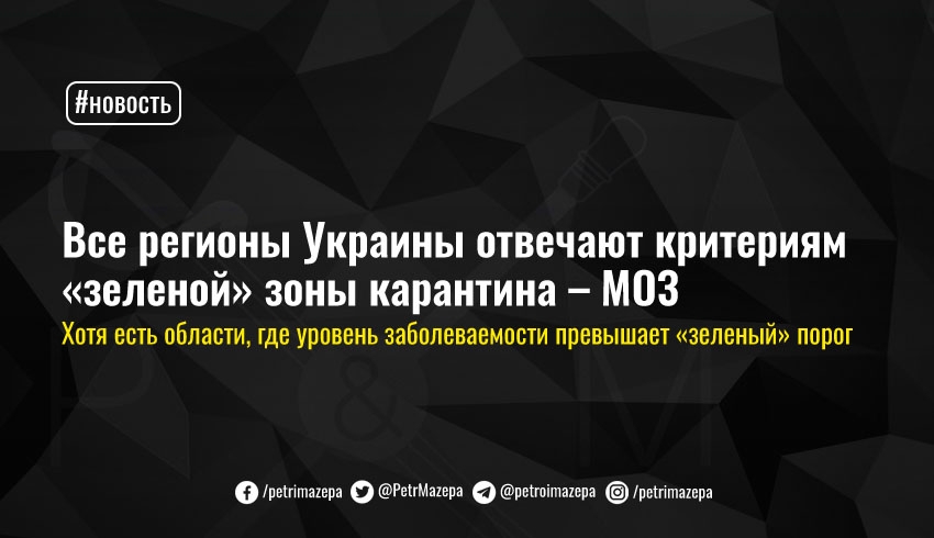 Все регионы Украины отвечают критериям «зеленой» зоны карантина – МОЗ