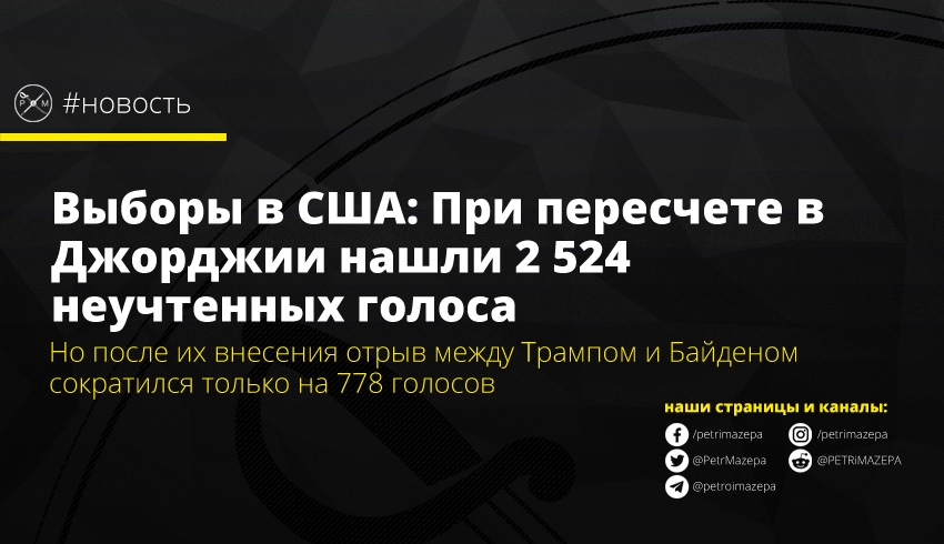 Так что теперь Дональд Трамп отстает от Джозефа Байдена не на 14 тысяч голосов, а на 13 тысяч с небольшим. В офисе госсекретаря уже призвали директора по выборам округа Флойд уйти в отставку. «К сожалению, это не проблема оборудования. Это человек, не выполняющий свою работу должным образом ... Это такая ситуация, которая требует, я думаю, изменений в руководстве», - цитирует заявление Габриэля Стерлинга WSB-TV.
