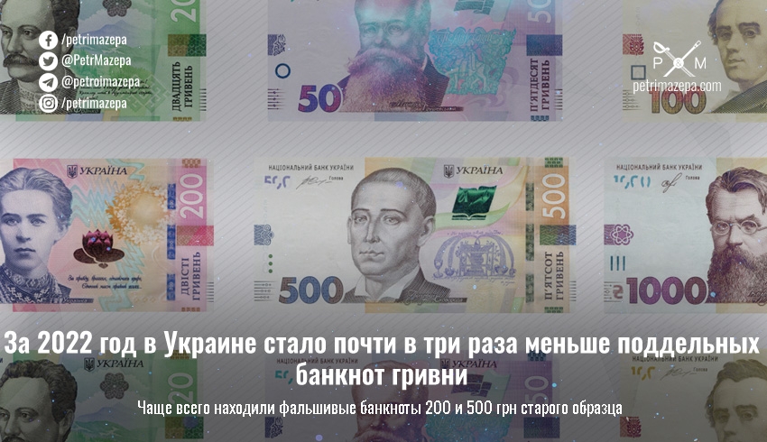 За 2022 год в Украине стало почти в три раза меньше поддельных банкнот гривни