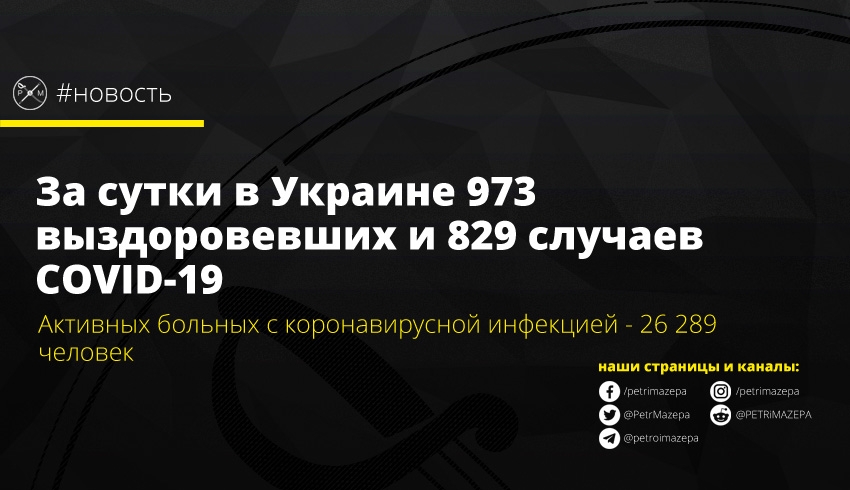 За сутки в Украине 973 выздоровевших и 829 случаев COVID-19
