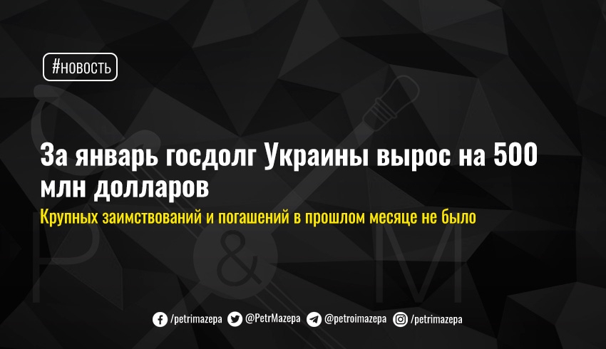 За январь госдолг Украины вырос на 500 млн долларов