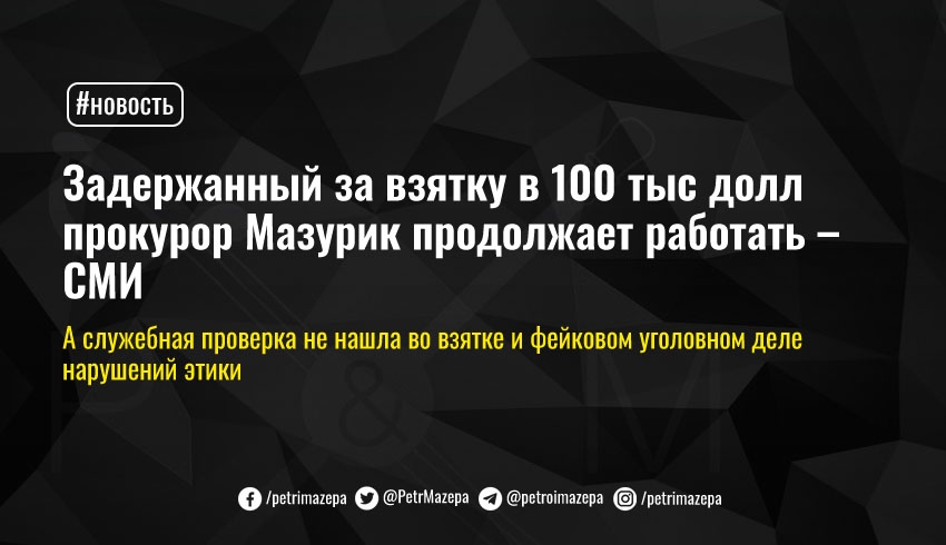Мазурика задержали летом 2020 года при получении 100 тыс долл взятки от сотрудника банка, тогда это же издание публиковало видео с попытками прокурора уместить полученные деньги в свою сумку. Тогда его взяли под стражу с правом внесения залога, и отстранили от должности. Как обычно, закончилось задержание тем, что Мазурик вышел под залог, потом сумму залога ему уменьшили в более чем 2,5 раза, а в январе этого года он и вовсе вернулся на работу. Как пишут журналисты со ссылкой на данные судебного реестра, подозреваемый по делу о мошенничестве ходит на судебные заседания, где представляет обвинение, регулярно.
