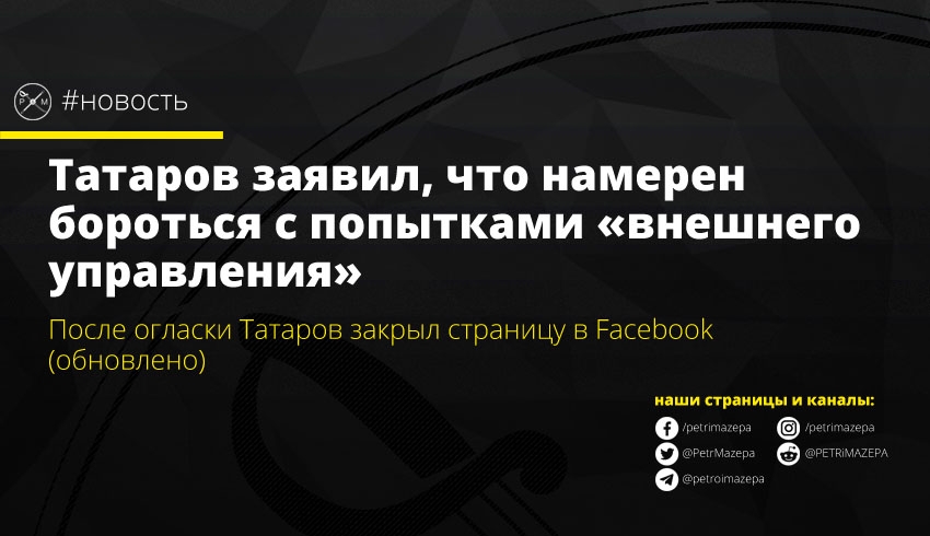 Свое заявление Татаров опубликовал в Facebook – он заявил что его позиция неизменна, а сфальсифицированных уголовных дел, требований и пикетов он не боится. Комментарии при этом он закрыл.