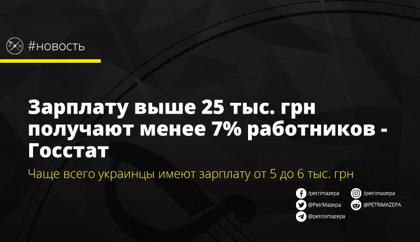 Зарплату выше 25 тыс. грн получают менее 7% работников - Госстат
