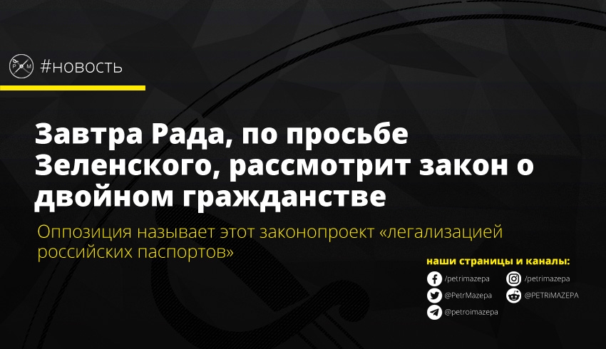 Завтра Рада, по просьбе Зеленского, рассмотрит закон о двойном гражданстве