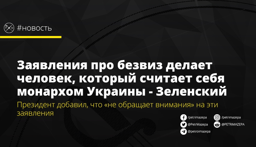 Заявления про безвиз делает человек, который считает себя монархом Украины - Зеленский
