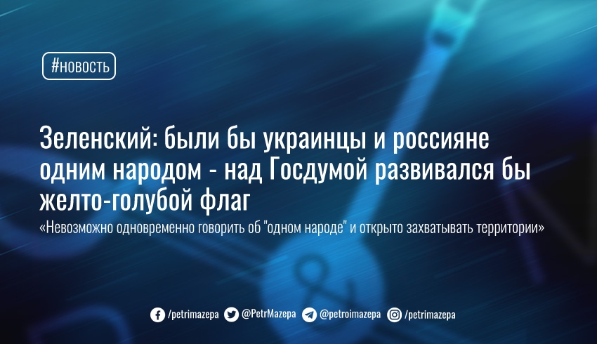 Зеленский: были бы украинцы и россияне одним народом - над Госдумой развивался бы желто-голубой флаг