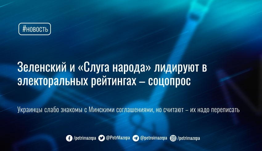 Социологическая группа «Рейтинг» обнародовала опрос общественно-политических настроений населения Украины – согласно им, украинцы все еще поддерживают «Слугу народа» и Зеленского, хотя о реальных выступлениях президента слышали куда меньше чем о его отдельных обещаниях. При этом граждане в основном поверхностно знакомы с текстом Минских соглашений, но считают что их надо переписать.