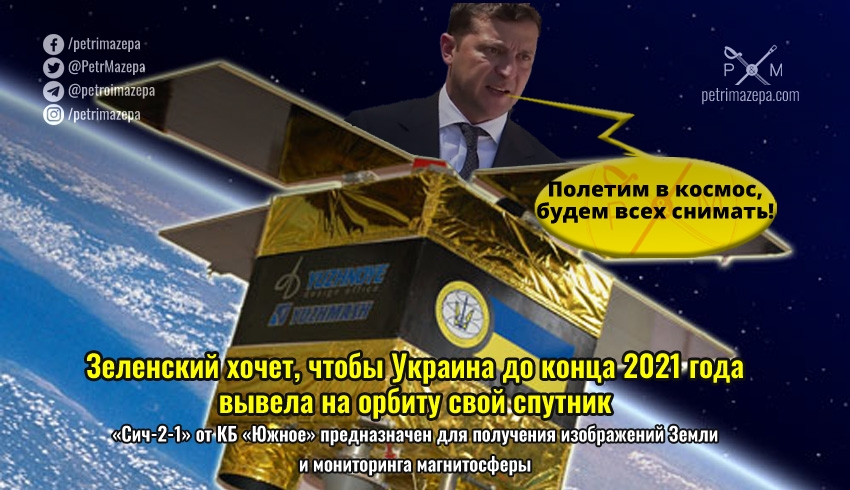 Президент Владимир Зеленский поставил задание запустить на околоземную орбиту спутник дистанционного зондирования земли «Сiч-2-30(2−1)» к концу текущего года. «Сич-2-1» от КБ «Южное» предназначен для получения изображений поверхности Земли и мониторинга магнитосферы.