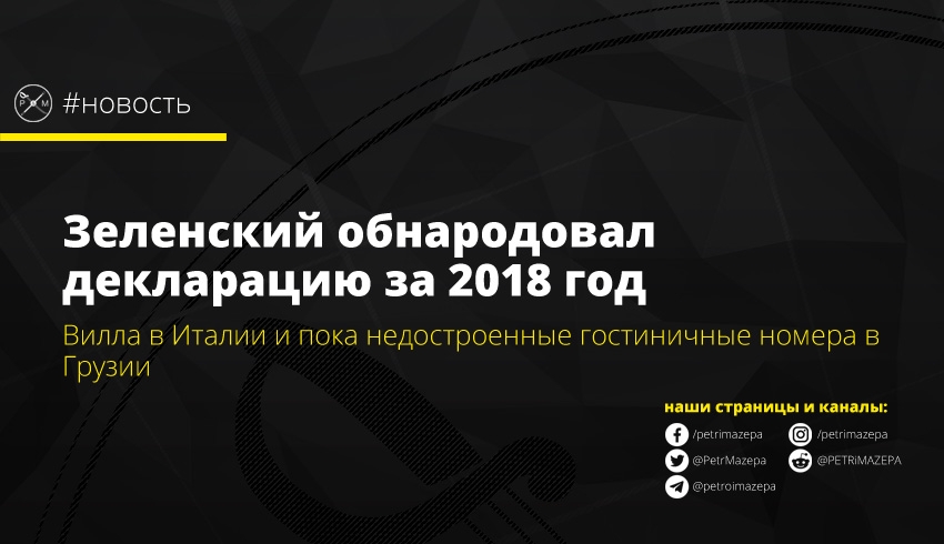 Новоизбранный президент Украины Владимир Зеленский представил свою электронную декларацию за 2018 год, которую он отказывался обнародовать во время избирательной кампании. Соответствующий документ опубликован в Едином государственном реестре деклараций. В нем, среди прочего, появилась информация о недвижимости в Италии и об объектах незавершенного строительства в Грузии.