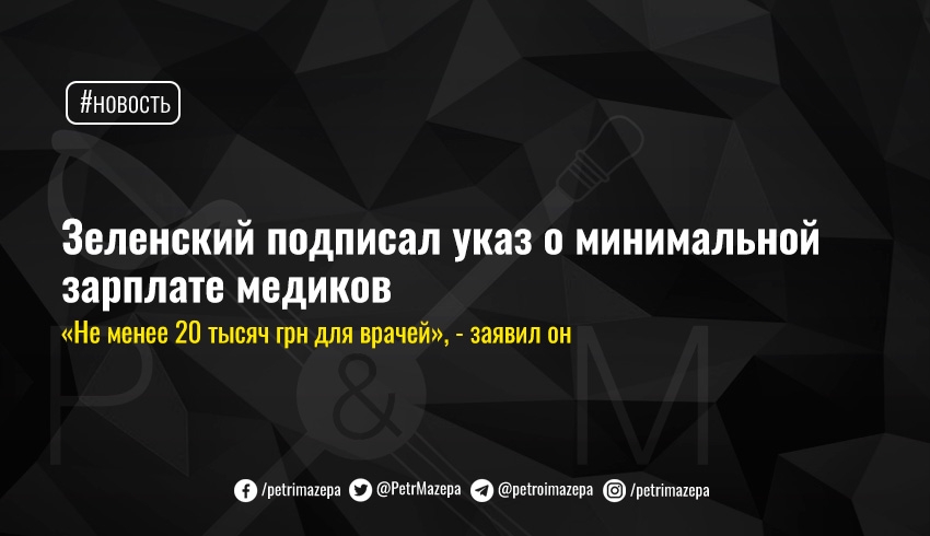 «Не менее 13,5 тысяч грн для среднего медперсонала и не менее 20 тысяч грн для врачей», - заявил Зеленский во время поздравления ко Дню медика.