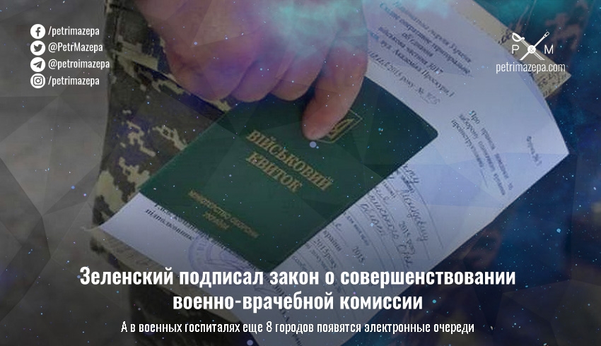 Президент Владимир Зеленский подписал законопроекты об улучшении системы военно-врачебных комиссий и совершенствовании процедуры оформления документов и лечения военнослужащих во время действия военного положения.