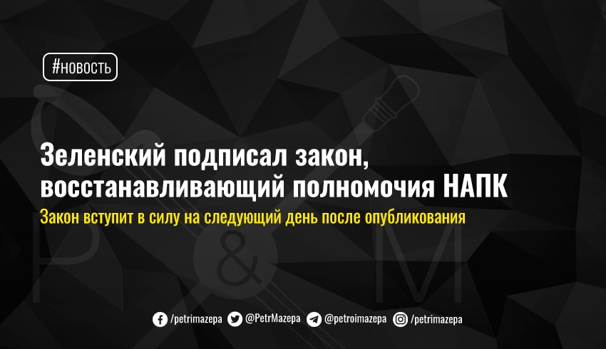 Офис президента напоминает, что этот закон, среди прочего, восстанавливает полномочия НАПК.