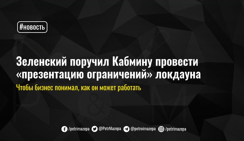 Зеленский дал поручение правительству провести детальную коммуникацию с общественностью и «выйти с детальной презентацией ограничений» как можно скорее.