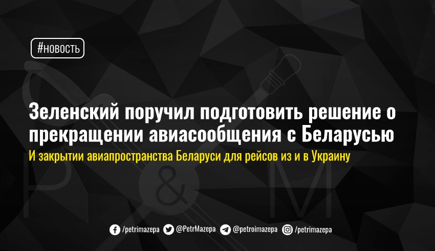Зеленский поручил подготовить решение о прекращении авиасообщения между странами и закрытии авиапространства Беларуси для перелетов из и в Украину.