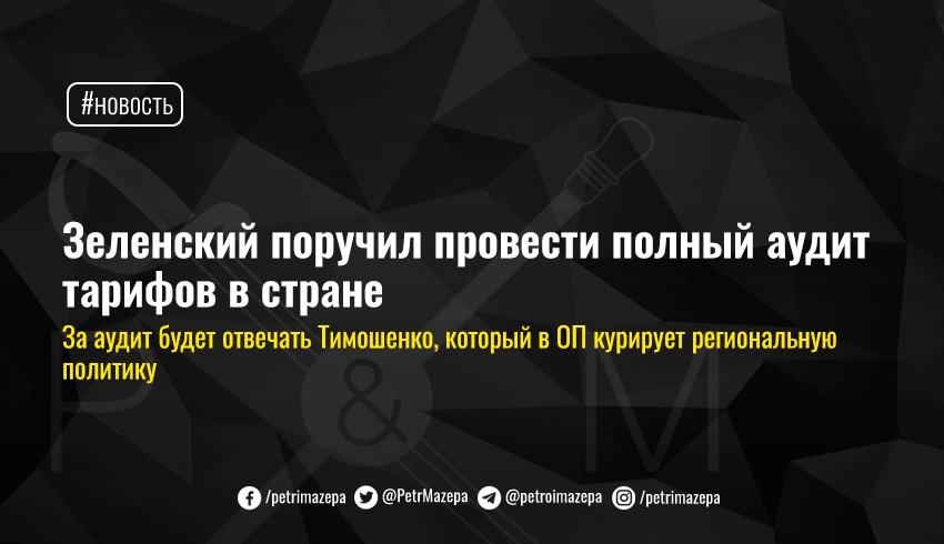 Президент Владимир Зеленский поручил заместителю руководителя ОП Кириллу Тимошенко провести полный аудит действующих тарифов в Украине.