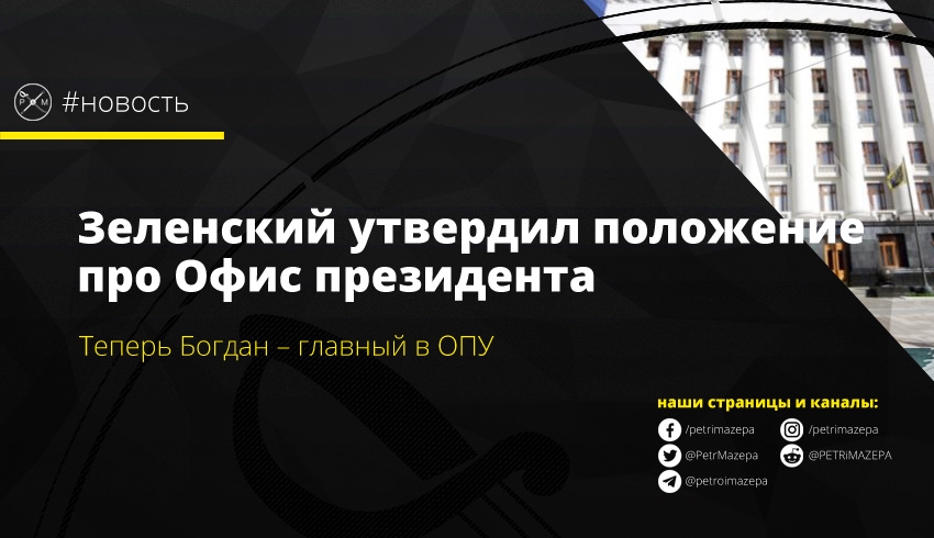 Президент Украины Владимир Зеленский утвердил положение про Офис президента Украины. Всего, сегодня он подписал около 20 указов, касающихся переформатирования АПУ в ОПУ. В основном – увольнял своих соратников из Аппарата и назначал в Офис. Так Андрея Богдана убрали с должности главы Администрации президента и назначили руководителем Офиса.