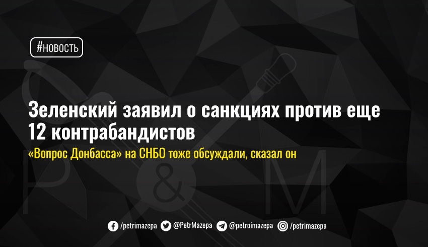 «Применят санкции еще к 12 топ-контрабандистам - физическим и юридическим лицам», - написал Зеленский в Facebook.