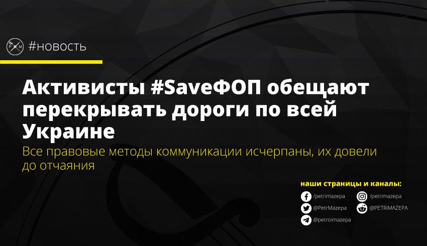 Активисты #SaveФОП обещают перекрывать дороги по всей Украине