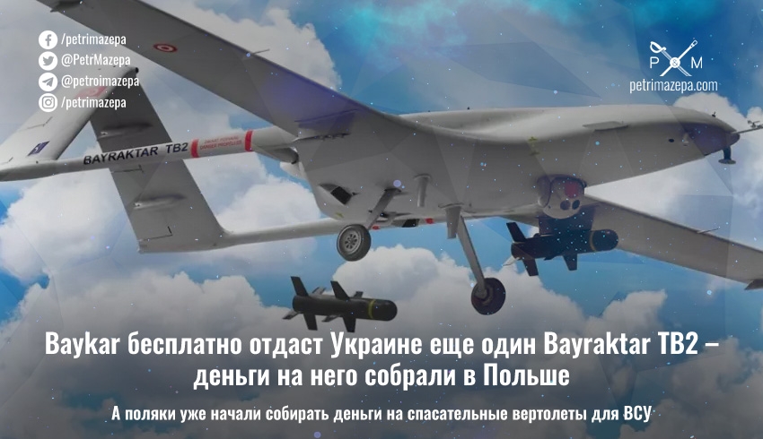В Польше собрали 4,8 млн долларов (22,5 млн злотых) на то, чтобы приобрести Bayraktar TB2 для Украины. Но производитель этих БПЛА компания Baykar снова сообщила, что «байрактар» ВСУ получат бесплатно. А собранные деньги пойдут на гуманитарные нужды украинцев. Тем временем поляки уже начали новый сбор на помощь ВСУ.