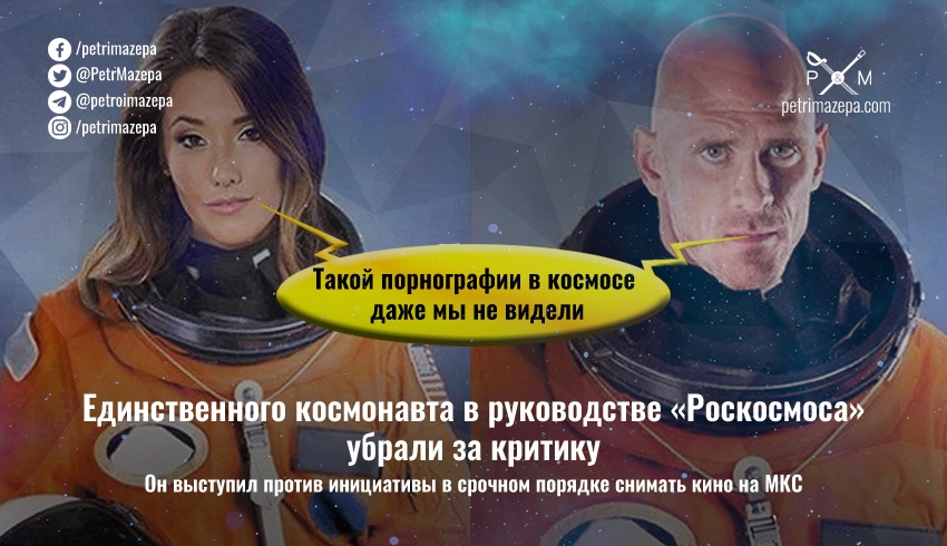 Бывший исполнительный директор по пилотируемым программам «Роскосмоса» Сергей Крикалёв (6 полетов и 8 выходов в космос) лишился этой должности и стал просто советником главы госкорпорации. Убрали экс-космонавта после того, как он позволил себе раскритиковать идею отправить на МКС уже этой осенью актрису и режиссера.