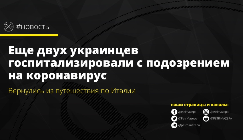В пресс-центре Черновицкой ОГА сообщили о госпитализации двух буковинцев с подозрением на коронавирус. Известно, что они вернулись из Италии.