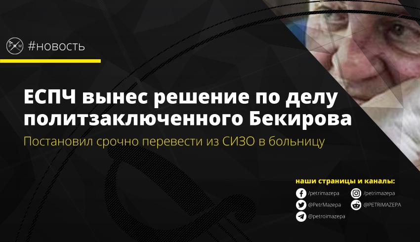 Европейский суд по правам человека (ЕСПЧ) вынес решение по делу крымскотатарского активиста Эдема Бекирова, который удерживается страной-агрессором в СИЗО. Его состояние здоровья стремительно ухудшается.